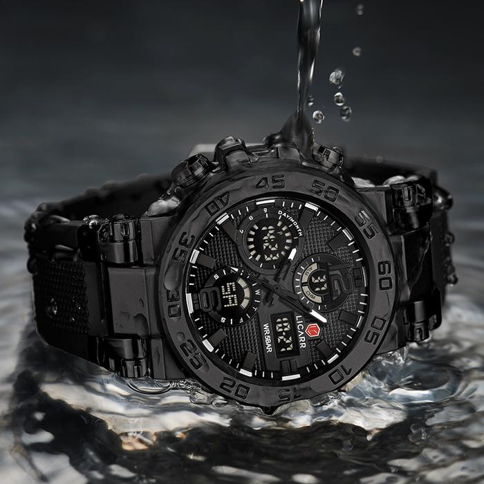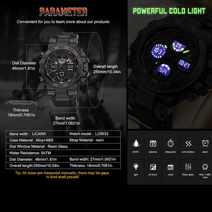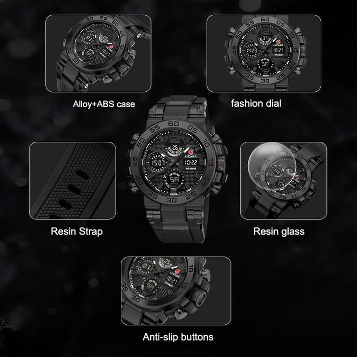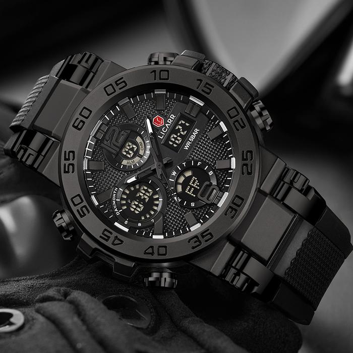 LICARR Jam Tangan Pria Olahraga Analog-Digital Santai Anti Air Kuarsa Multifungsi Jam Tangan Keren Cowok Merek Original