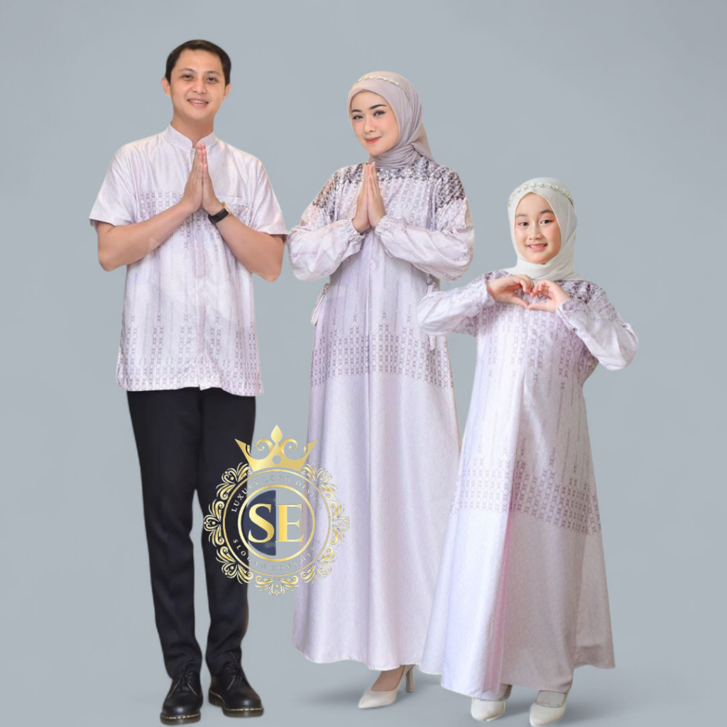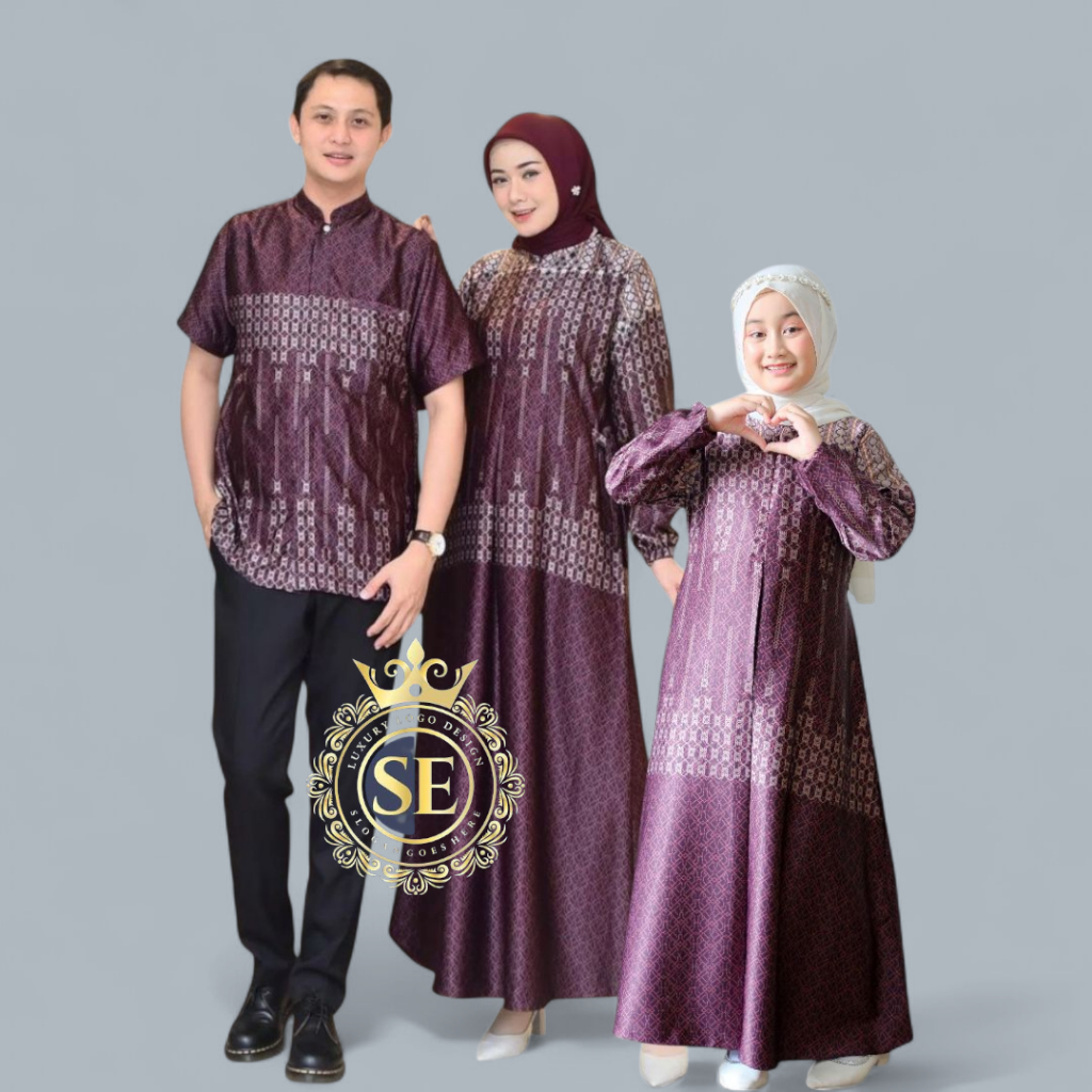 Sarimbit Couple Keluarga - Dress Family Set Printing Sarimbit Motif Silk Premium Baju Muslim Lebaran
