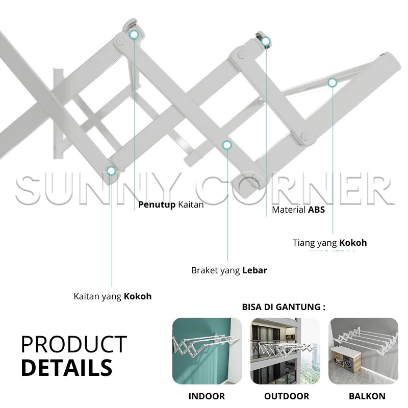 Jemuran Dinding Jemuran Baju Dinding Jemuran Baju Stainless Ditarik yang Jemuran Pakaian Lipat 200CM