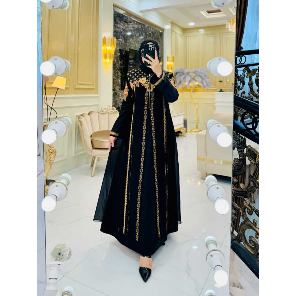 Gamis Abaya Hitam Turkey Bahan Jersey Mix Ceruty Bordir / Baju Busana Maxi Dress Muslim Wanita - Mayra