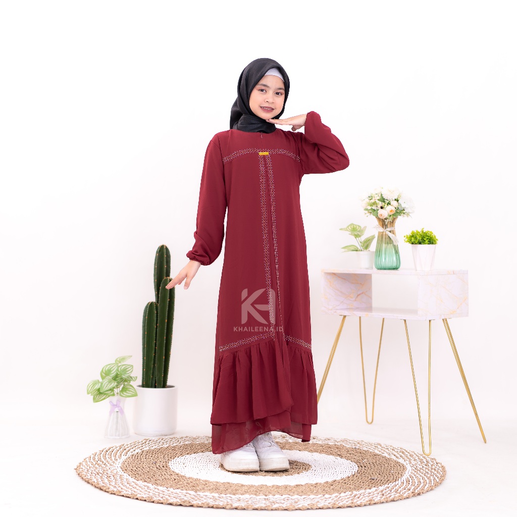 Gamis Anak Perempuan Khaileena Dress Ceruty Swarovsky | gamis lebaran anak perempuan 2024 baju muslim anak perempuan tanggung terbaru kekinian usia 6 sampai 14 tahun bahan ceruty baby doll armani