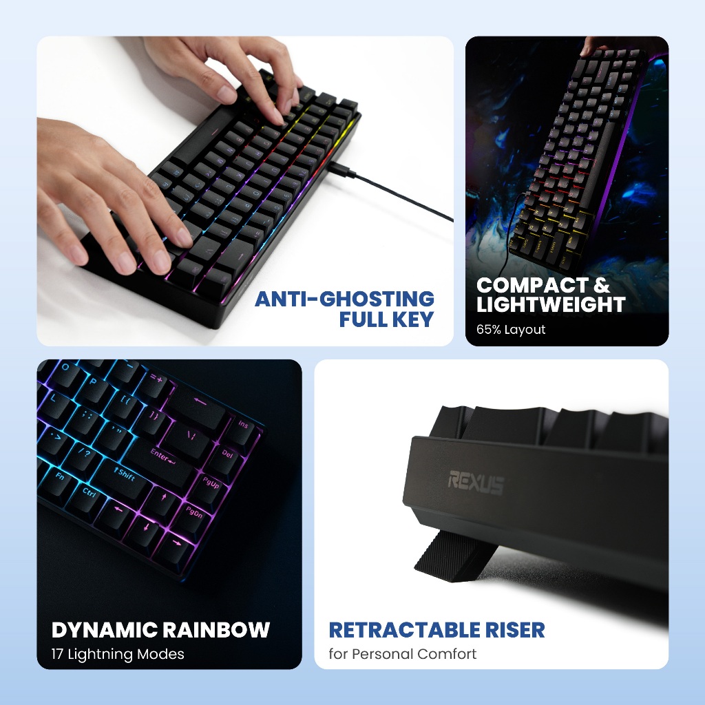 [Exclusive Akulaku] Rexus SH600 Keyboard Gaming Mechanical 65% Layout - Full Key Anti-Ghosting
