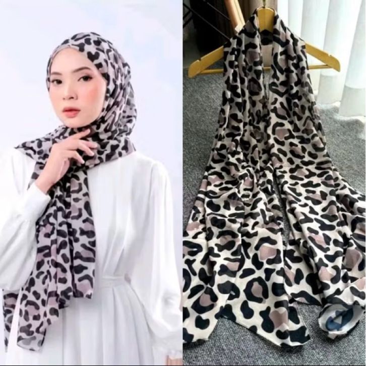 Pashmina Leopard 180x75cm Bahan Ceruty Babydoll Premium Lembut