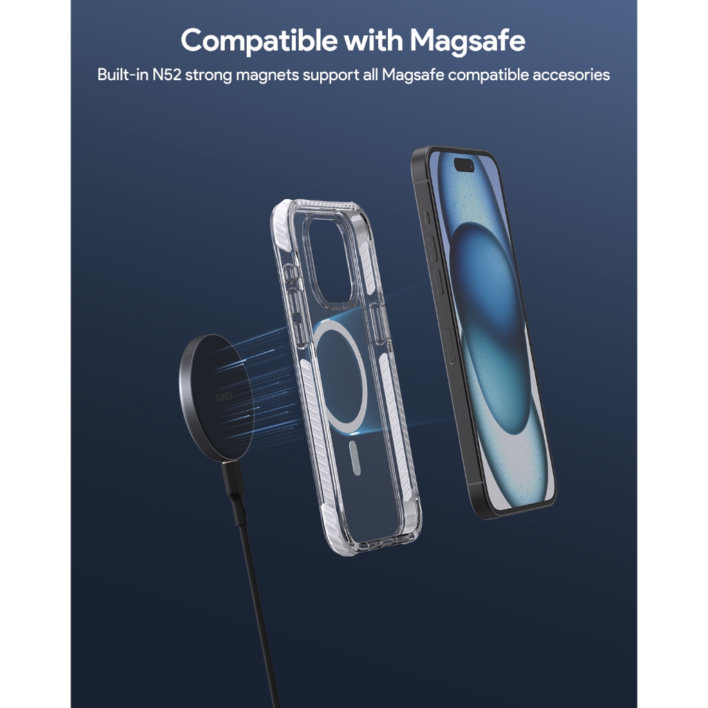 [Star] AUKEY Premium Clear Case iPhone 15 PC-TM11-CL – MagSafe, Crystal Protection