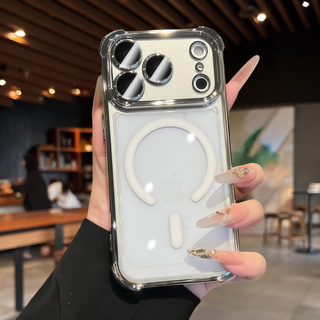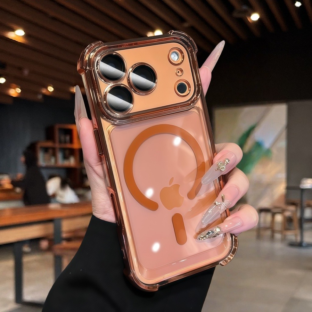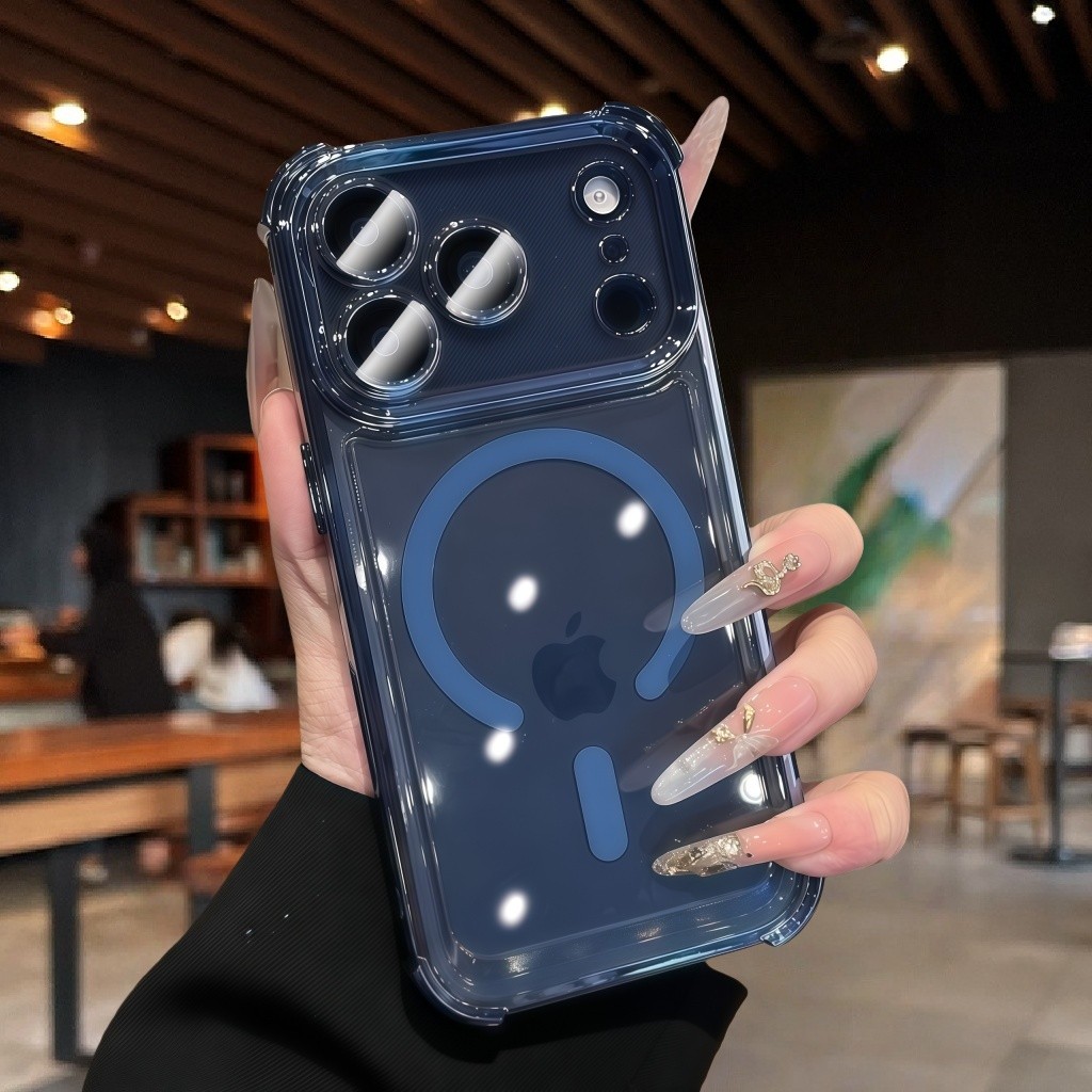 [Star] New17 Deep Blue 6D Plating Magnetic Phone Case for IPhone 17 Pro Max 17 Pro 17 Transparent Casing Airbag