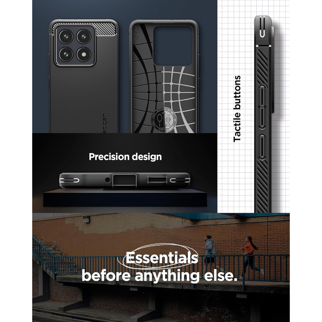 [Star] SPIGEN Rugged Armor Case Xiaomi 14/14T/15/15T Pro – Matte Carbon Fiber, Slim, Anti-Crack & Shockproof