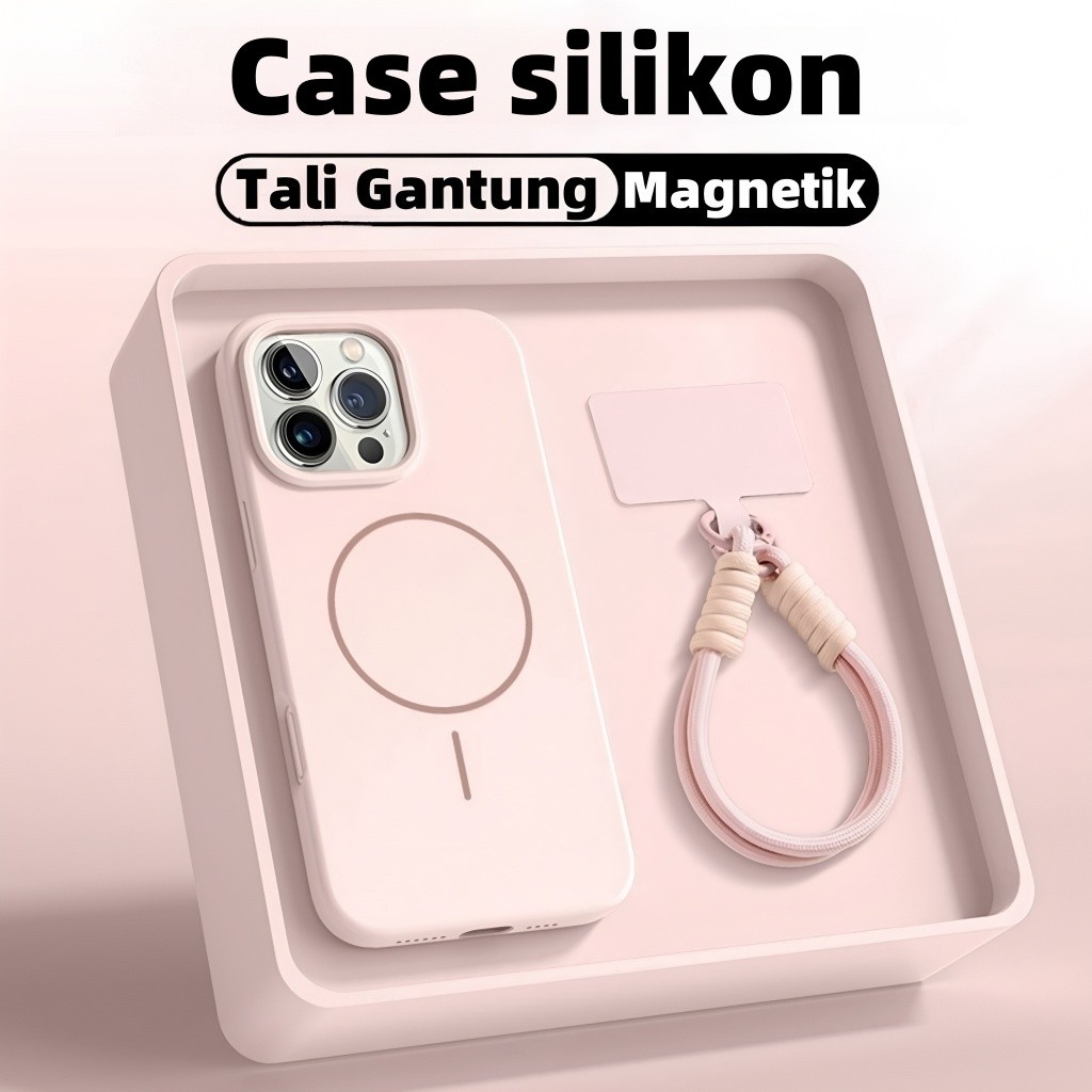 [Star] Casing Matte Silicone iPhone 11–16 Series – Softcase Anti Fingerprint, Shockproof, Magnetic Strap & Lanyard
