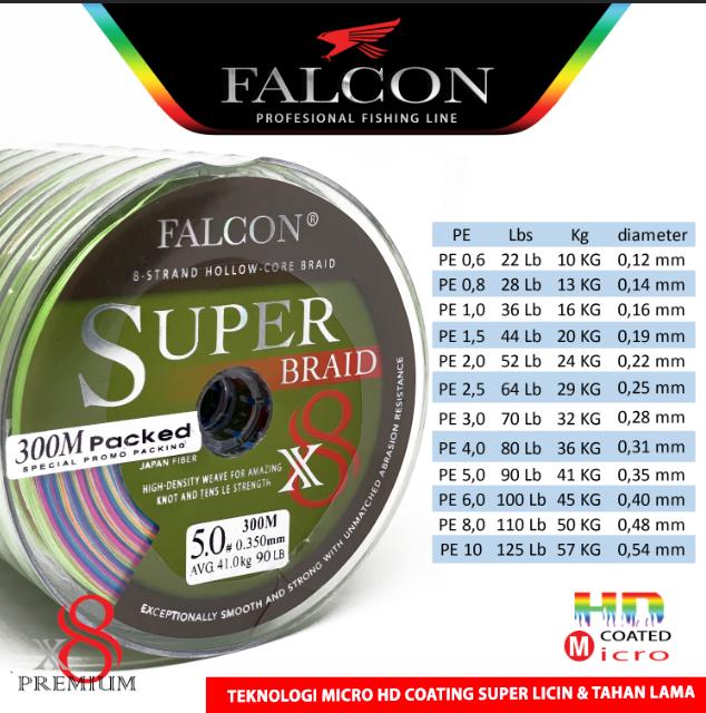 Senar PE X8 Falcon Super Braid 300M Connecting Laut Mancing Pancing