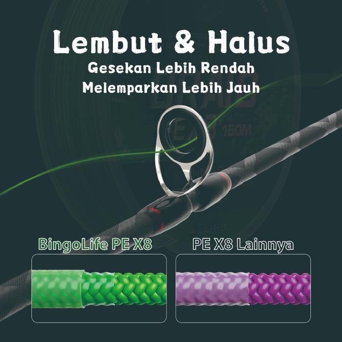 Senar PE Casting 150m Hijau Benang Pancing PE X8 Tali Pancing Kecil Kuat Halus 0.12mm Tahan Abrasi