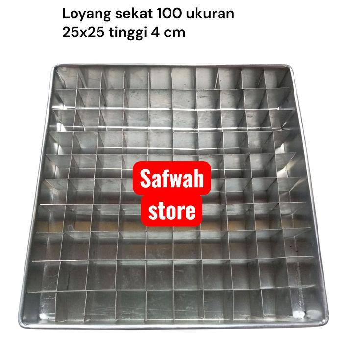 Safwah Store Loyang Sekat 100 Ukuran 25x25 Tinggi 4 cm untuk Kue dan Dessert cetakan - ukuran 20x20 sekat 100