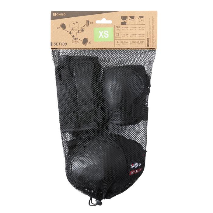 Decathlon OXELO Set Pelindung Anak Inline Skuter Skate 2x3 100 - Hitam - 8563374