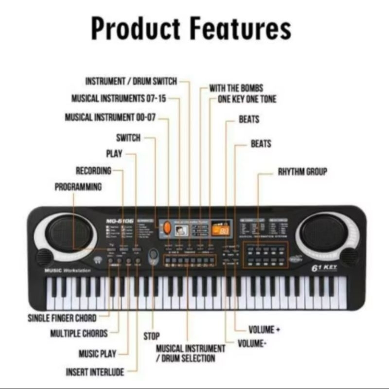 Mainan Piano Anak 61 Keys BTC-3605 Electronic Keyboard Plus Mic