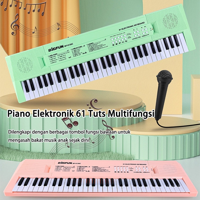benston_music_surabaya-Piano Elektronik 61 Tuts Multifungsi untuk anak, cocok untuk pemula, dilengkapi dengan mikrofon,
