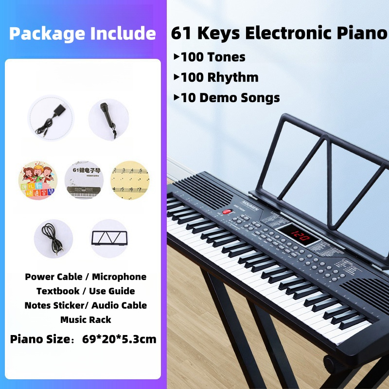 【】Piano 61keys Piano Elektronik Pemula Piano Mainan Anak-Anak Smart Piano / Dengan Mikrofon dan Adaptor Electronic Ke