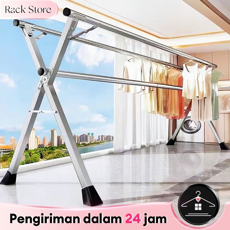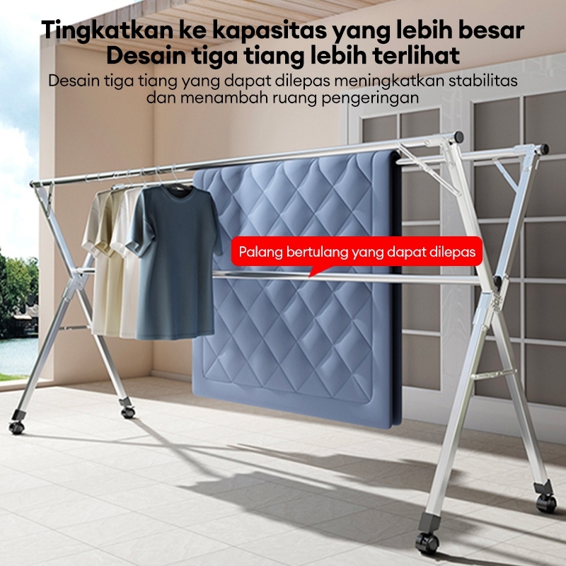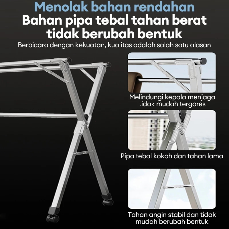 Jemuran Baju Stainless Steel SUS-304 Anti Karat Kuat Lipat rtable 240cm - Tempat Pakaian Tahan Lama untuk Rumah
