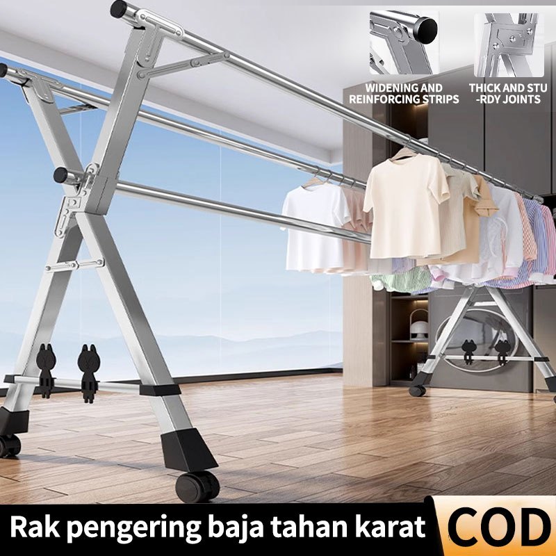 160-240cm Jemuran Baju stainless steel Jemuran baju stainless steel Lipat Jemuran Pakaian rtable Jemuran Hanger Gan