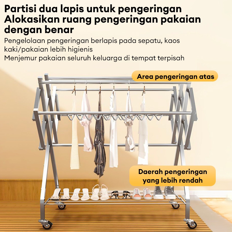 Jemuran Baju Stainless Jumbo Dengan Rak Sepatu Jemuran Baju 160CM Jemuran Pakaian Stainless Kuat