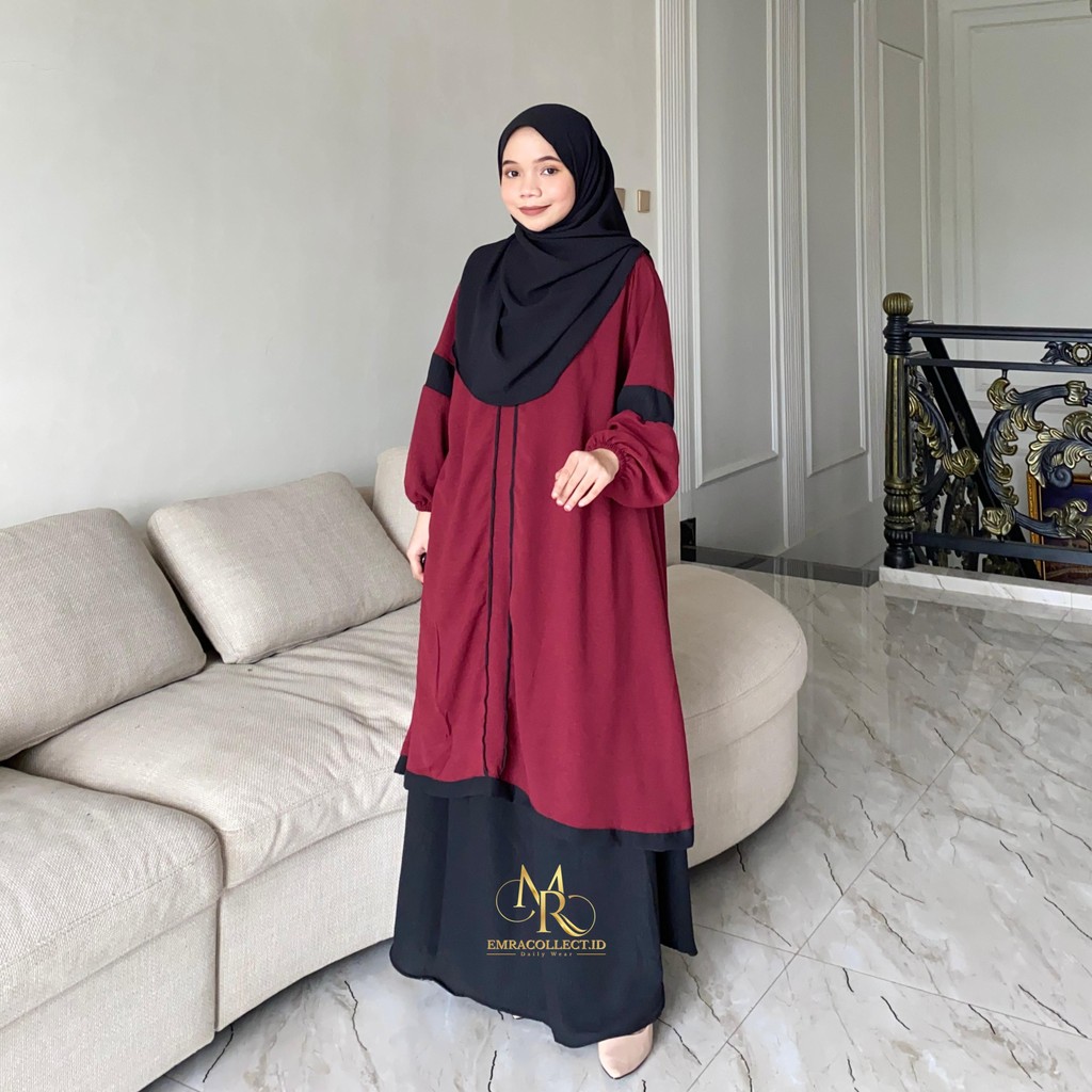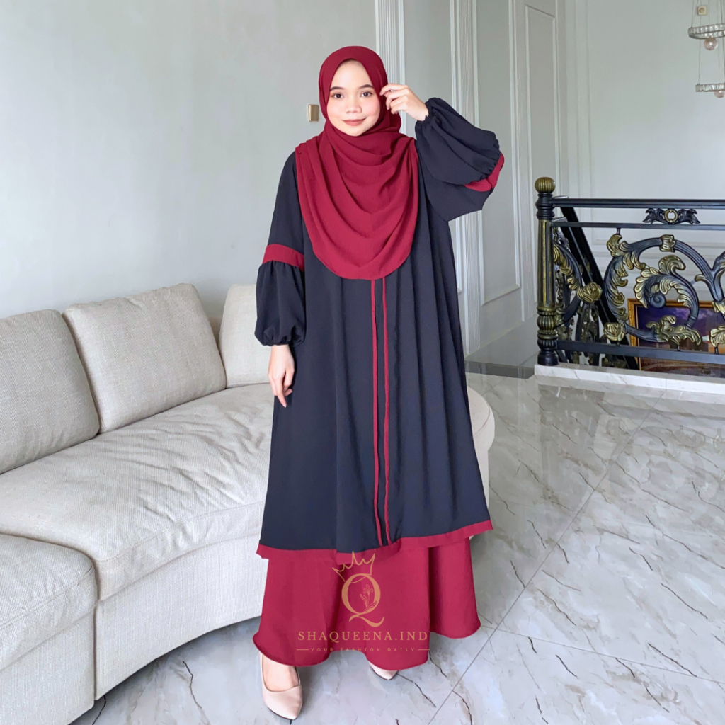 Oneset Tunik Rok Malaya Setelan Rok Syar’i Jumbo Gamis kombinasi simple - Shaqueena.ind
