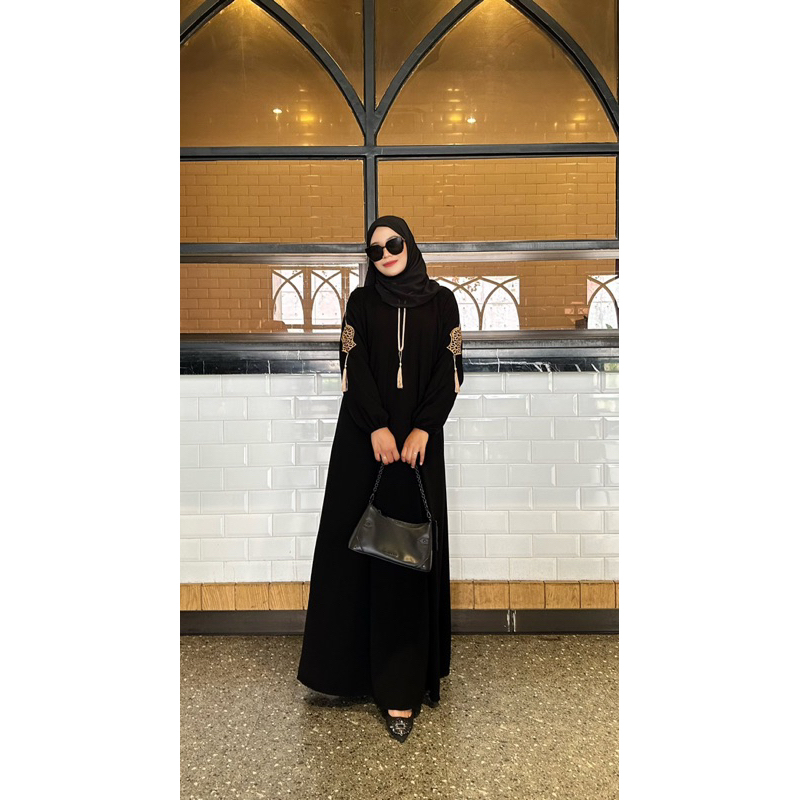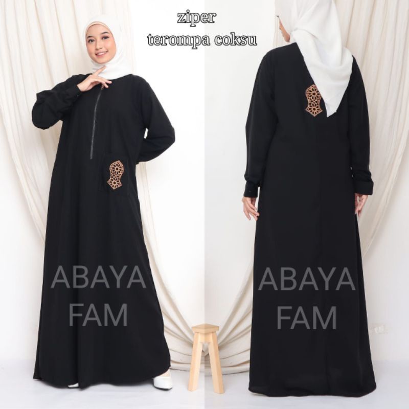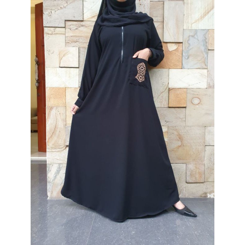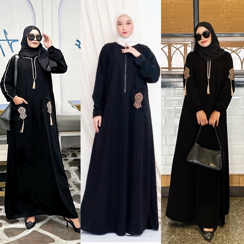 Abaya Hitam Turkey Gamis Maxi Dress Arab Saudi Bordir Turki Dubai Ziper Terompa Saku