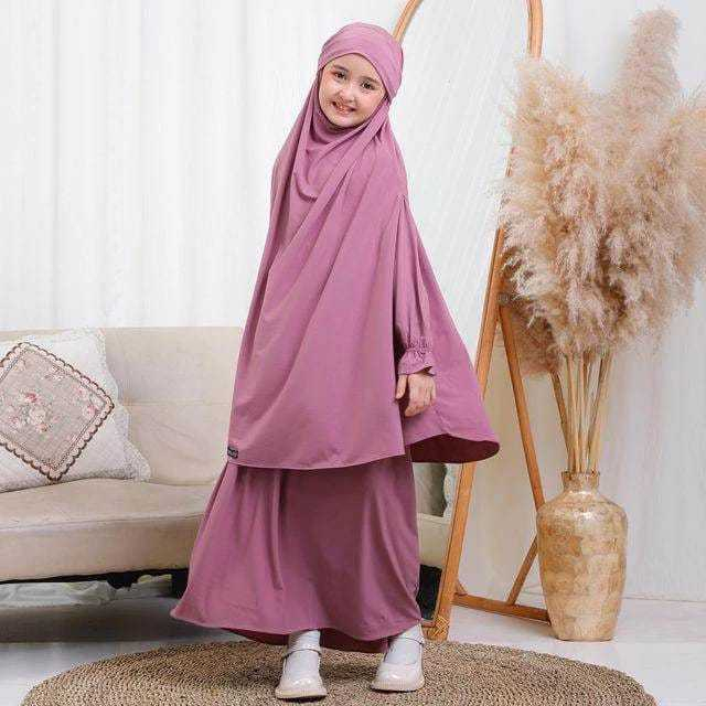 Baju Muslim Anak Perempuan 3-13 Tahun Gamis Syar'i Khimar Nada Set Hijab Kekinian Dari Fatimah - Bahan Jersey Premium, Nyaman Dipakai - Panjang