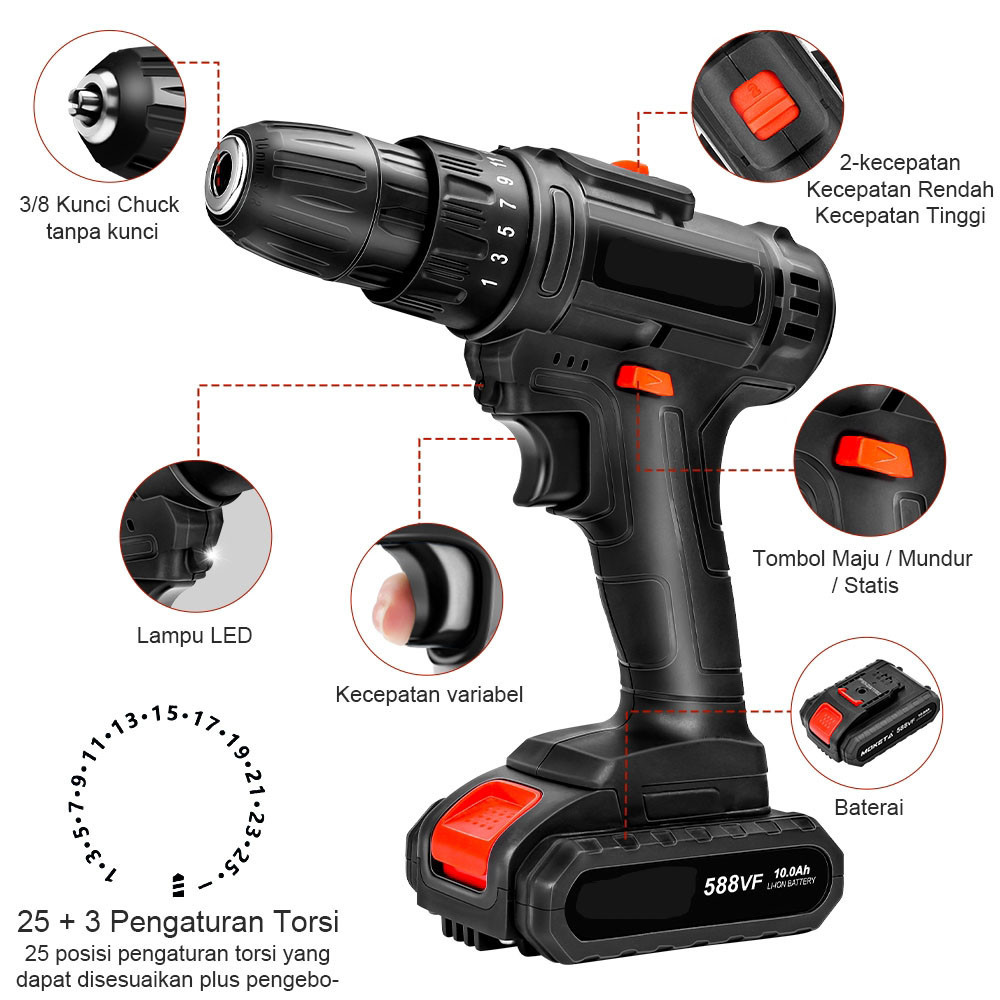 Mesin Cordless Screwdriver mesin bor baterai Multifunction Electric Screwdriver bor listrik Bor Cordless Drill Oben