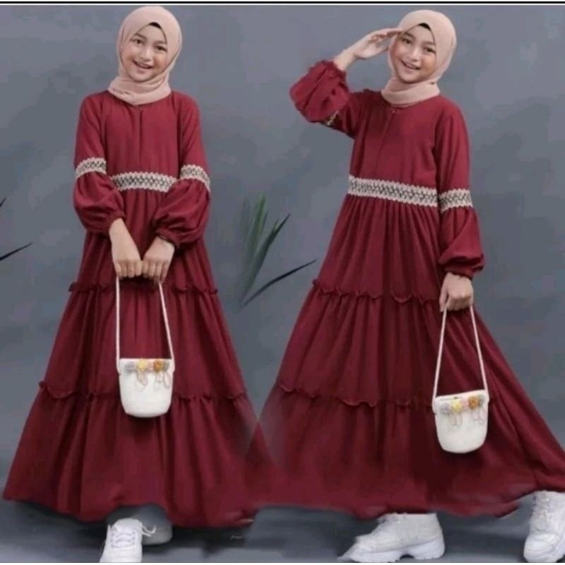 Baju Gamis Anak Putih Perempuan Usia 4-13 Tahun Variasi Renda Bahan Crinkle Airflow Terbaru Kekinian