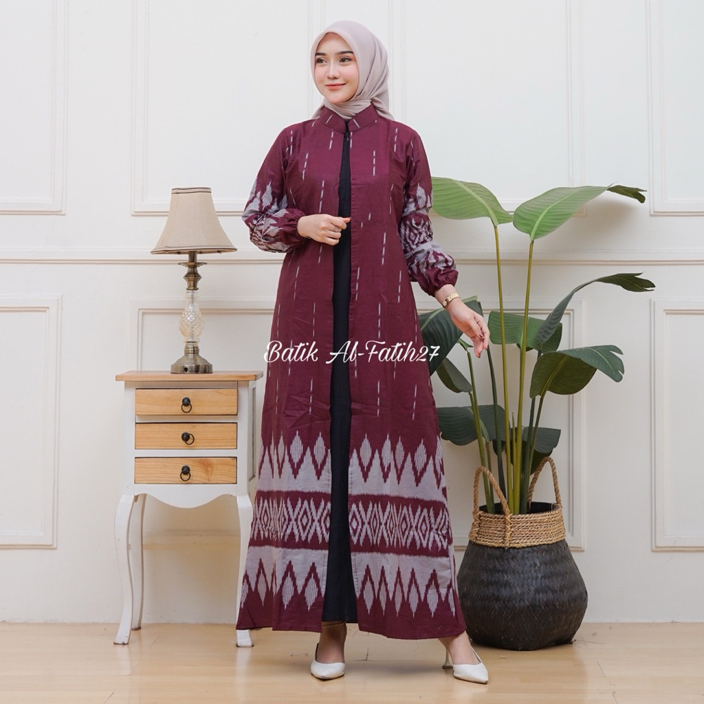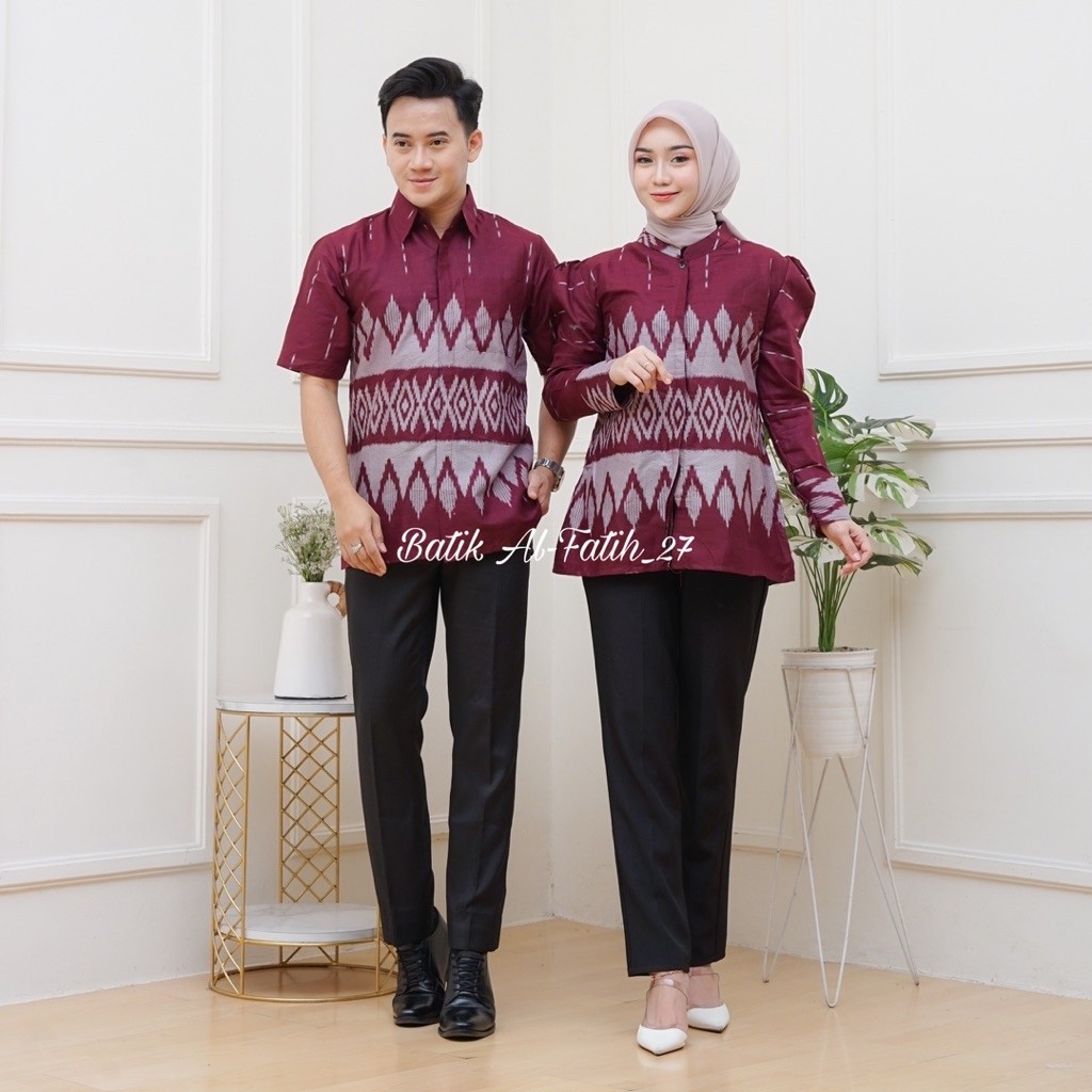 Baju Batik Couple Pasangan Suami Istri Kekinian Bahan Katun Premium Motif Songket Burgundy