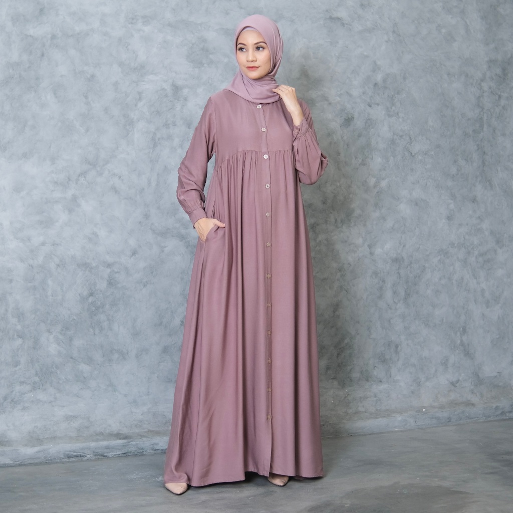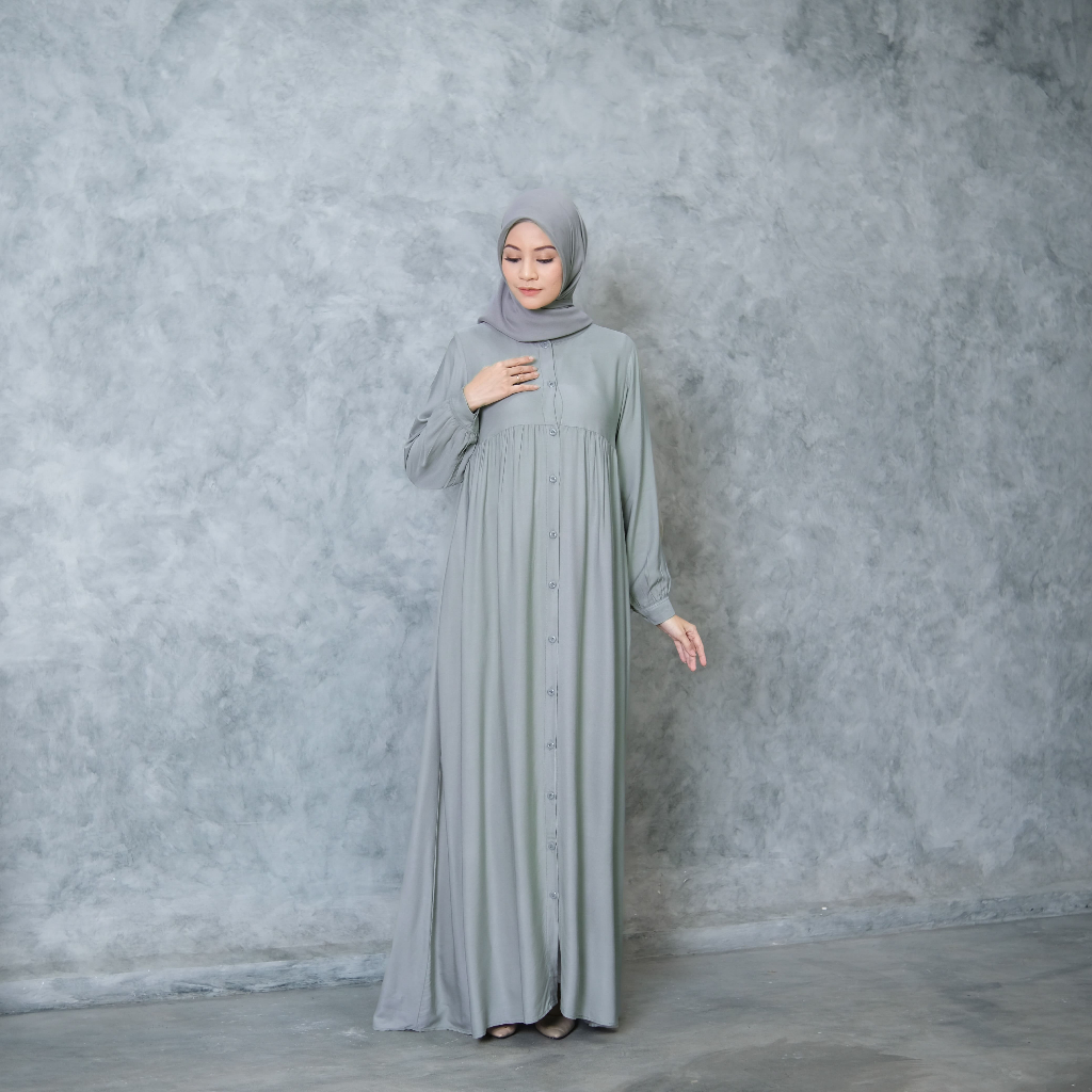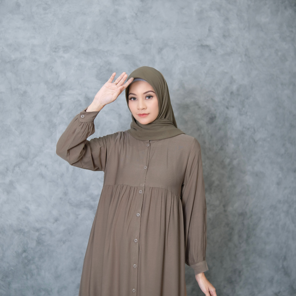 Gamis Full Kancing Rayon Twill Gamis Polos Premium Muslim Wanita Gamis Lengan Kancing