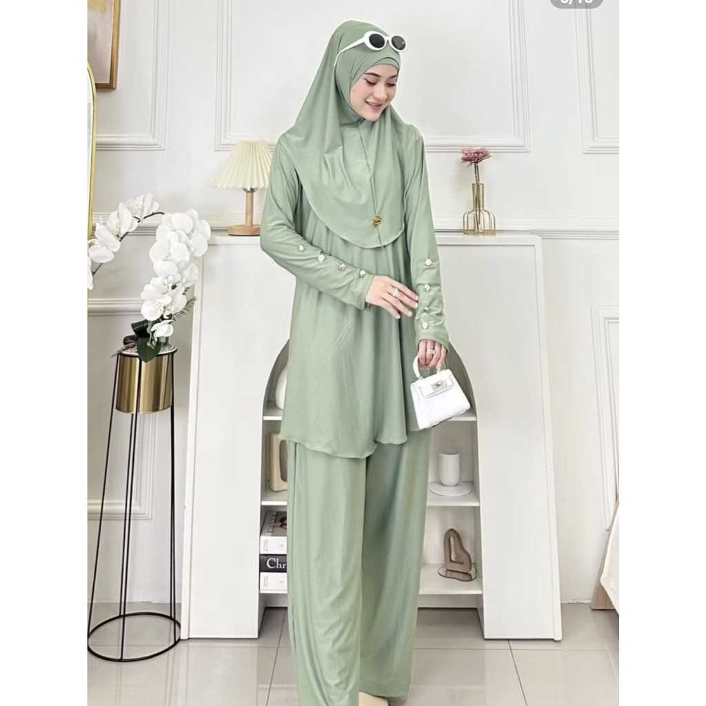 Setelan Celana inara set Kerudung bergo + inner For Daily Bahan Spandek balon semi jersey