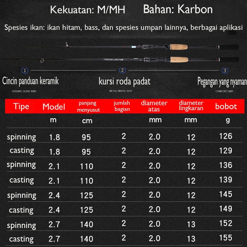 HAIYI FISHING Pancing 1 Set Reel Pancing Lengkap Kuat Tongkat Pancing Keras Untuk Laut Tongkat Pancing Portabel 2 Bagian