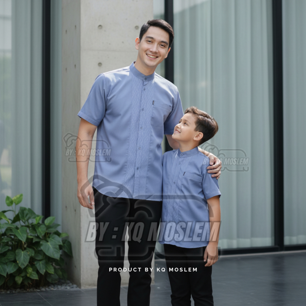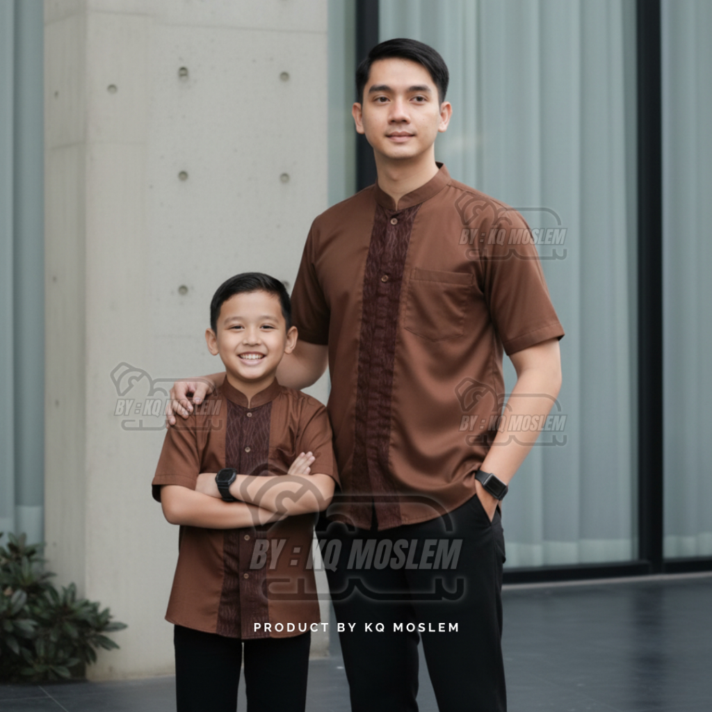 Baju Koko Couple Ayah Anak Laki Laki Warna Mahogany Lengan Pendek Motif Embosh Bahan Katun koko Terbaru 2026