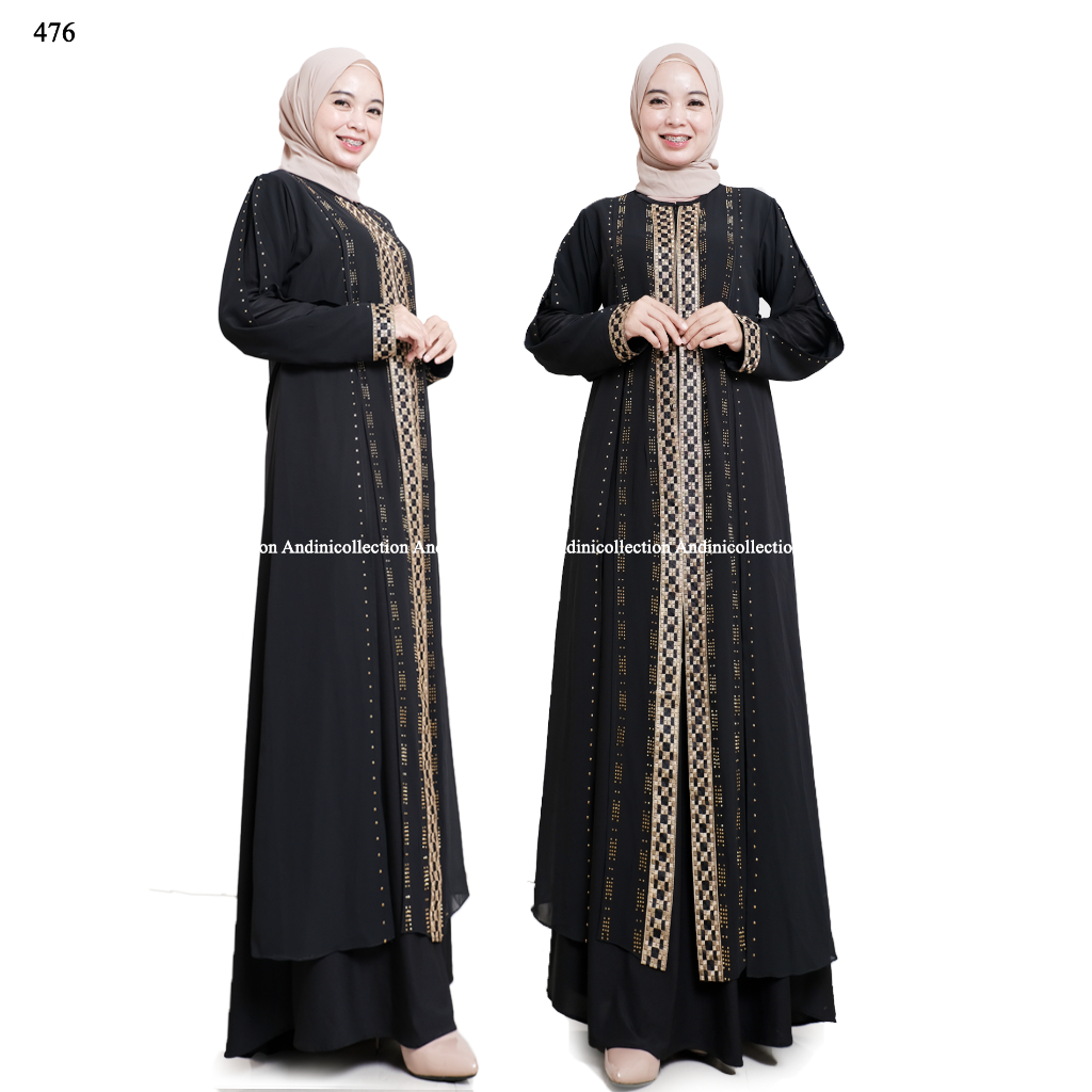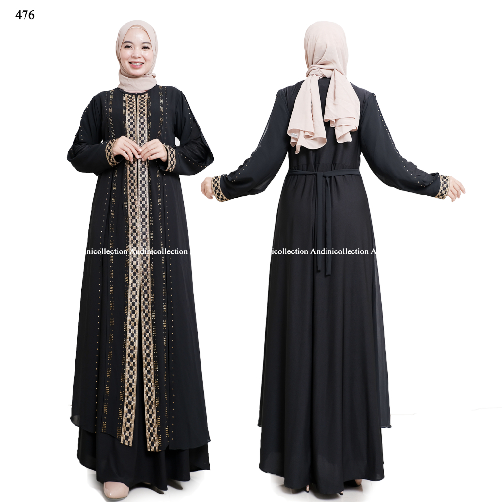 Abaya Turkey 476 Amarta Hitam Putih Dewasa Muslim Bordir dan Payet Mewah