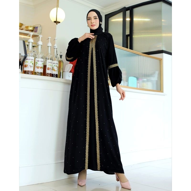 Abaya Gamis Syari Arab Saudi Hitam Bordir Turkey Muslimah Turki Cantik Abaya Ziper Renda Gold