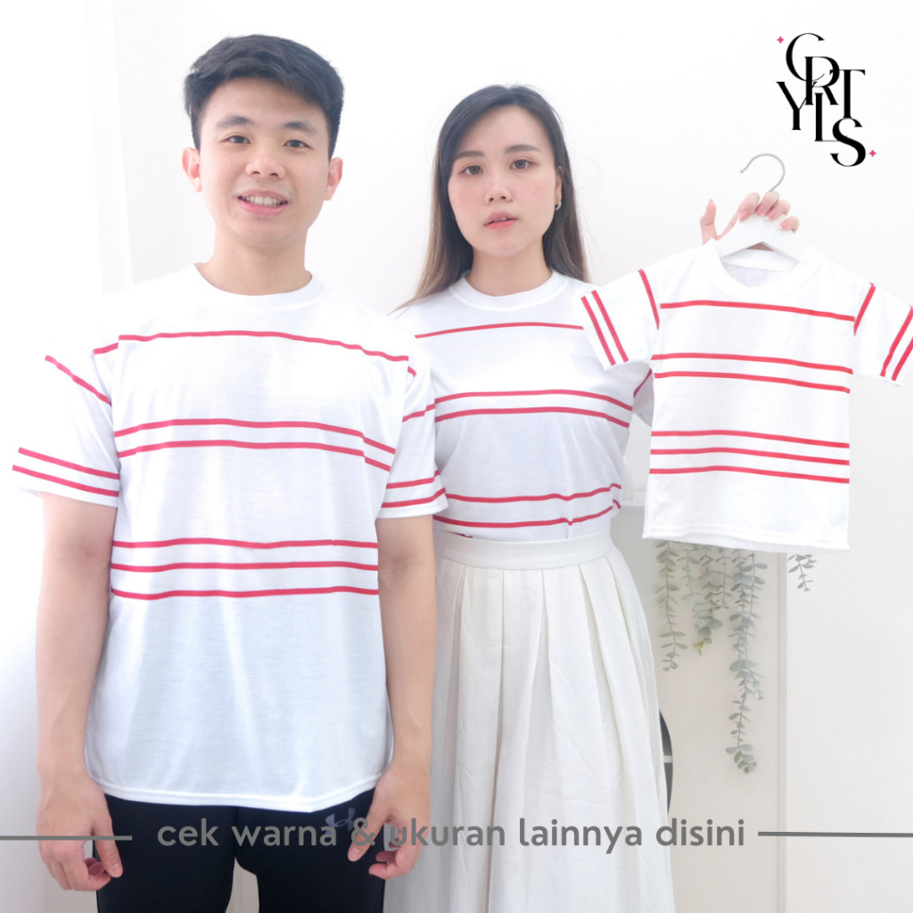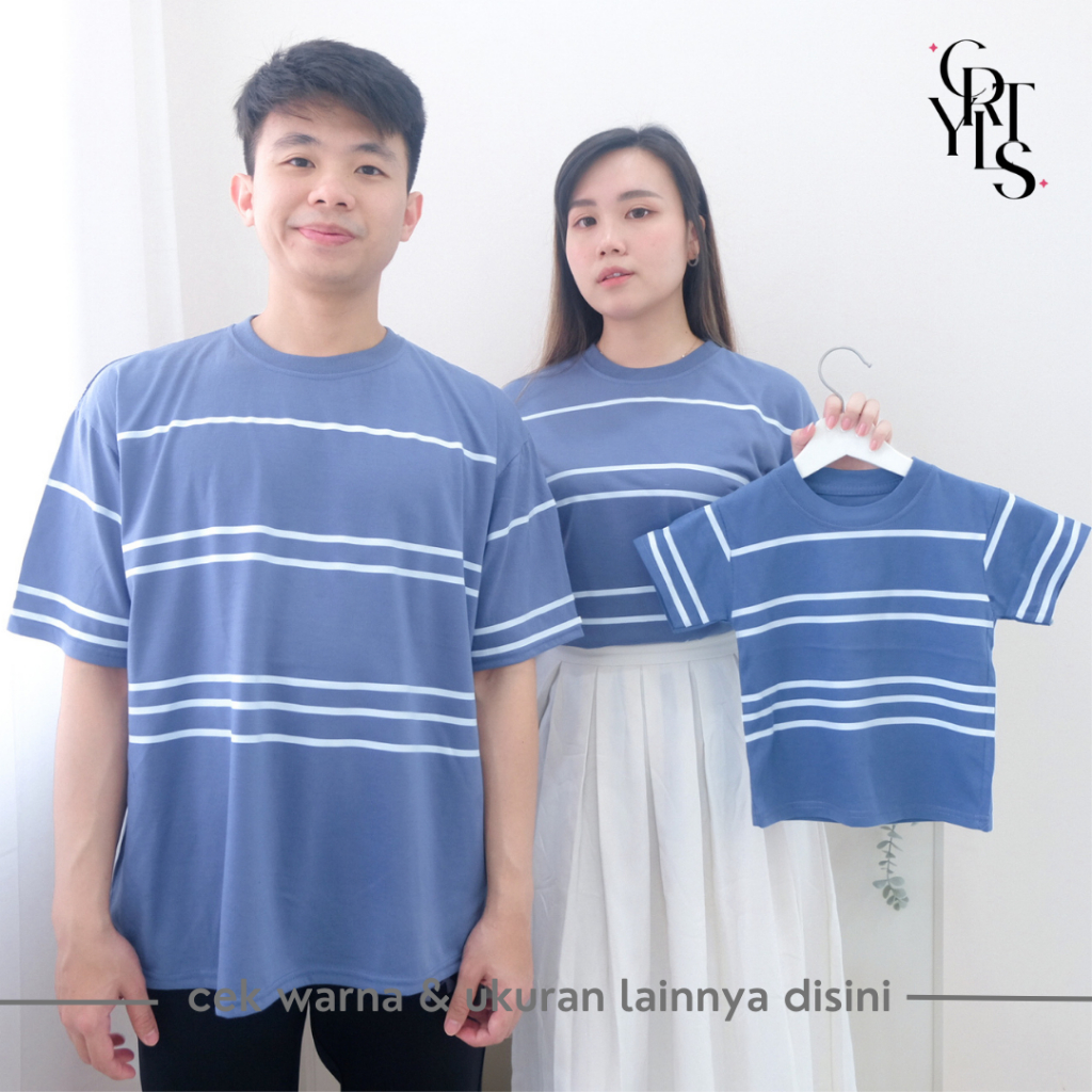 Carotyles Baju Atasan Kaos Couple Keluarga Family Wanita Anak Perempuan Laki Laki Pasangan Oversize Jumbo Lengan Pendek Panjang Korean Style Terbaru Garis 123 2