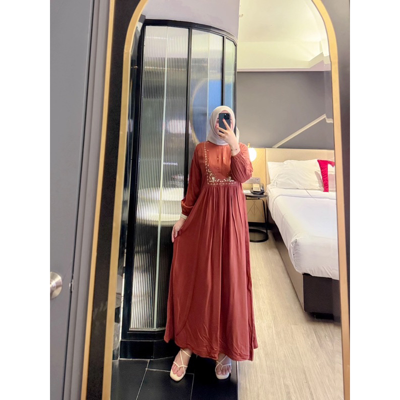 MECCA DRES GAMIS LEBARAN BORRDIR RAYON TWILL TALI SAMPING PREMIUM GAMIS HARI RAYA ABAYA PREMIUM