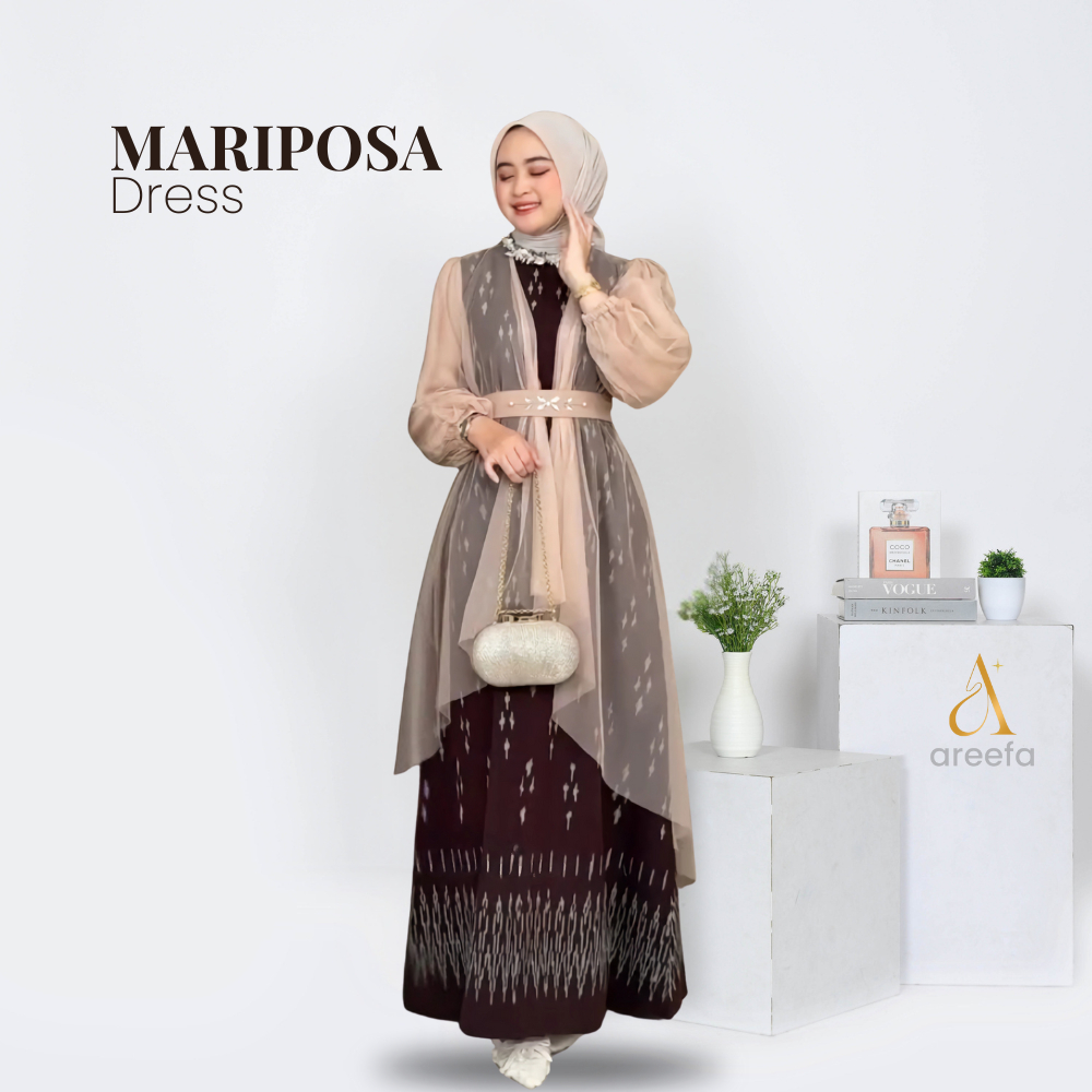 MARIPOSA Gamis Dress Tenun Etnik Kombinasi Tile Premium Wanita Remaja Pesta Mewah Mahogany