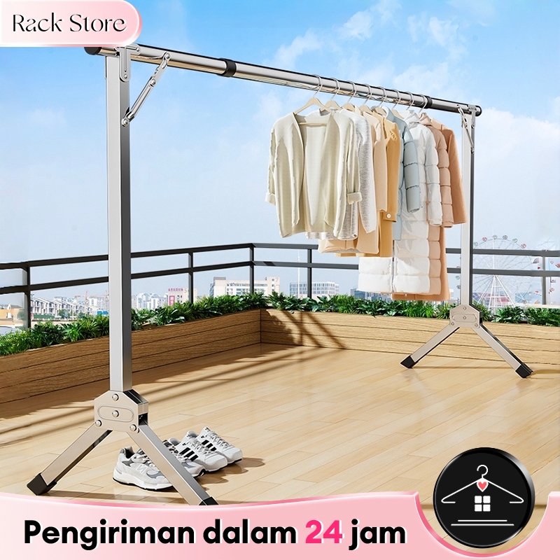 Jemuran Baju Stainless Steel Jemuran Pakaian Lipat Jemuran rtable 240cm/Tidak Diperlukan Instalas