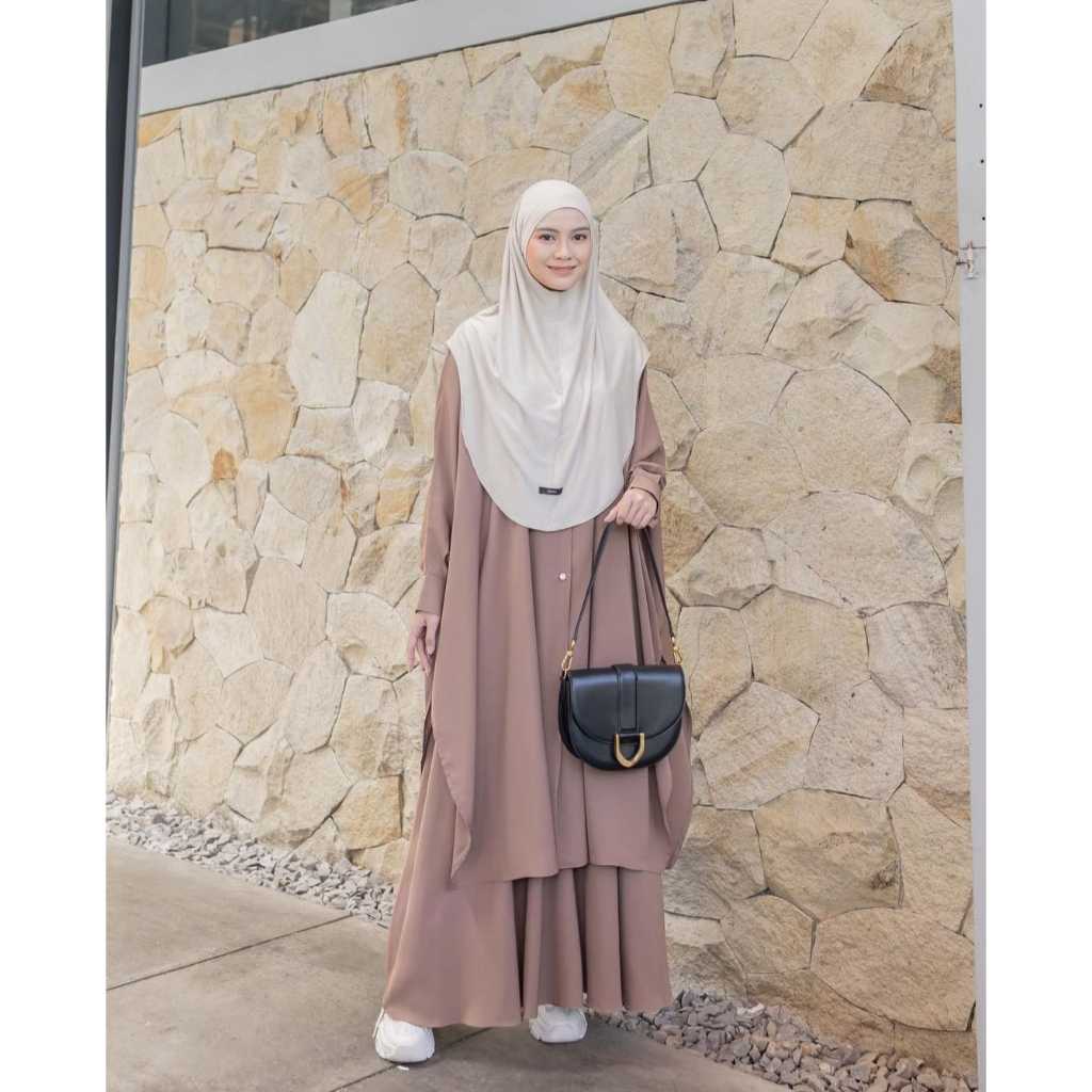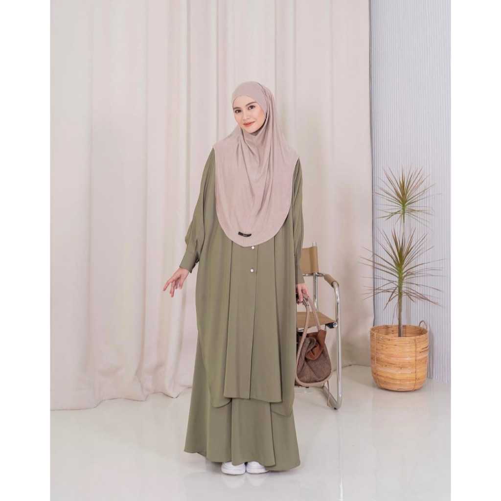 Aurora Set 2In 1 Abaya Syar'i Oneset Tunik Batwing + Rok Fashion Muslim Wanita Baju Setelan Jumbo