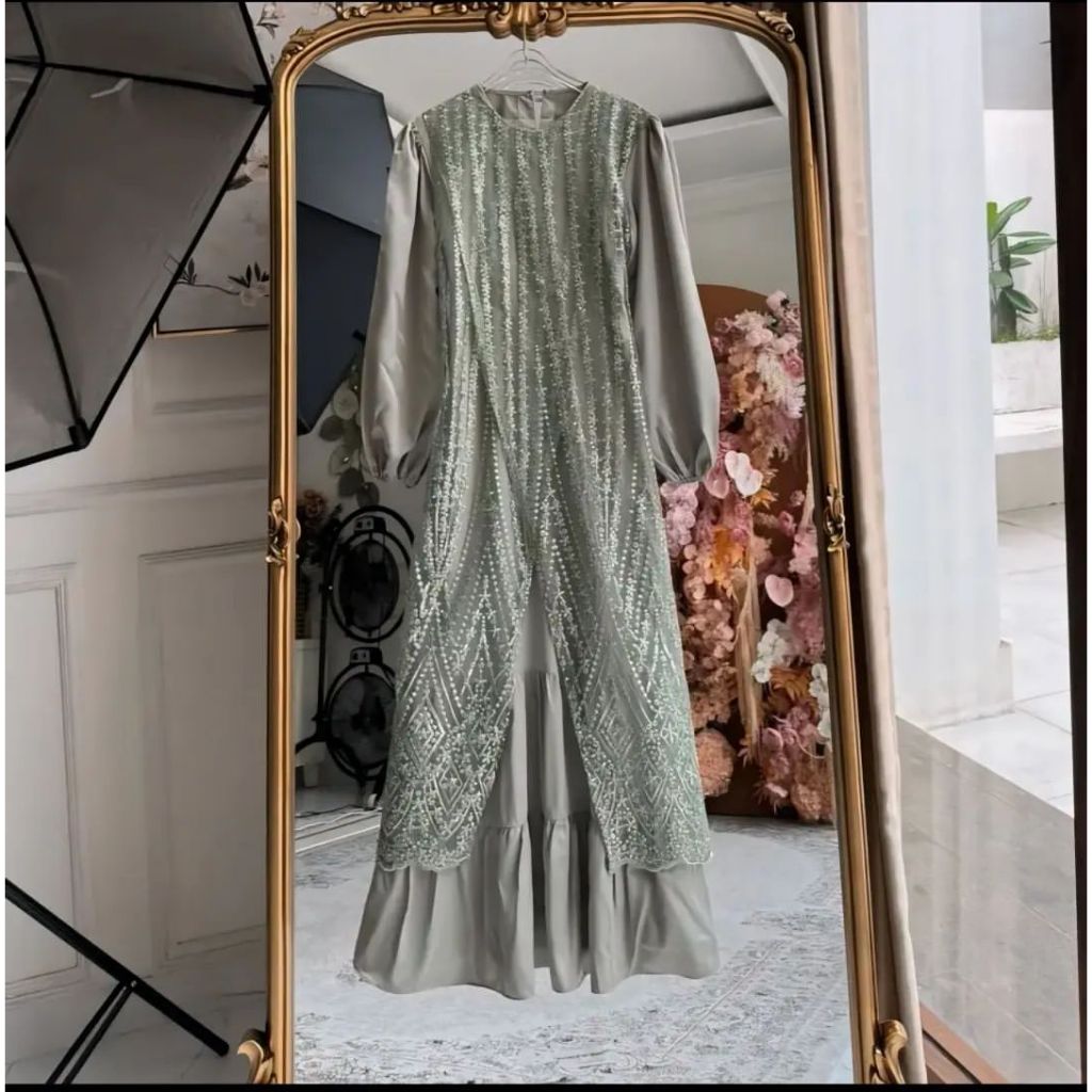 Dress Brokat Kondangan Terbaru Olivia Dress Bahan Valvet Mix Brukat Tille Akar Gamis pesta Mewah