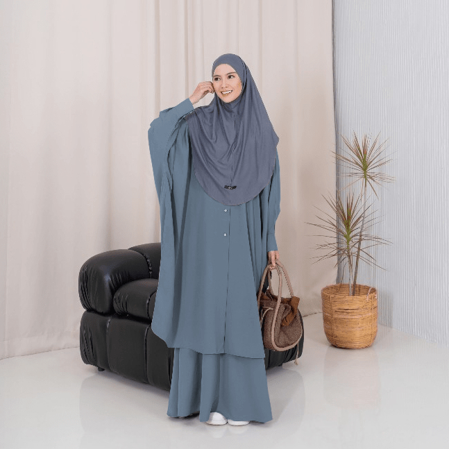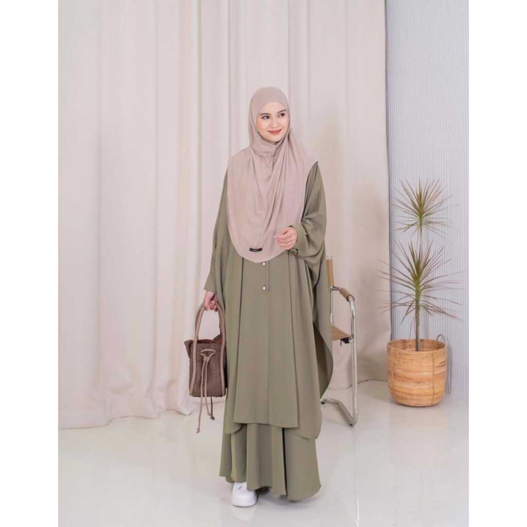 ANR - Oneset Abaya Syar'i Matt Tiffany Twill Super Jumbo LD 215 Setelan Rok Wanita Muslimah Terbaru