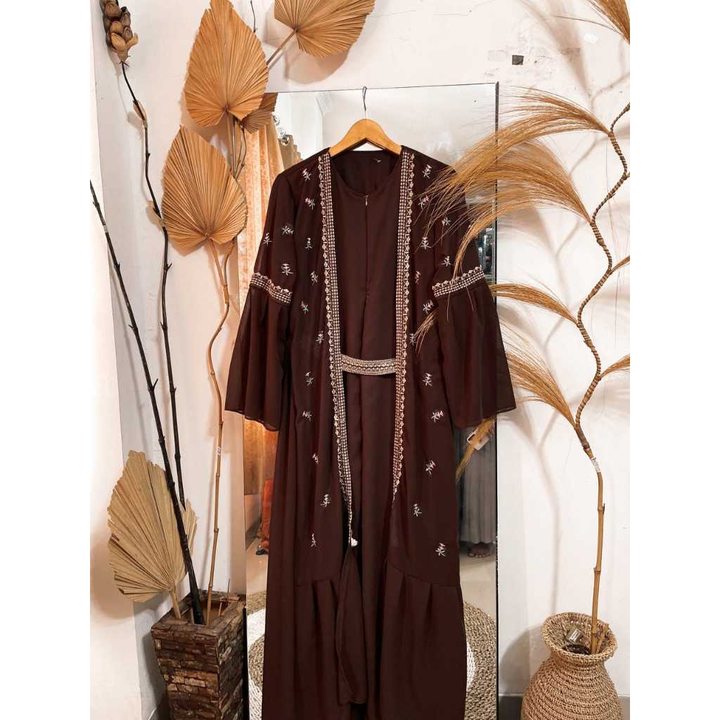 Khaura Fashion Safwa Abaya Maxi Dress Kondangan Wanita Dewasa Model Kekinian Bahan Ceruty Babydoll