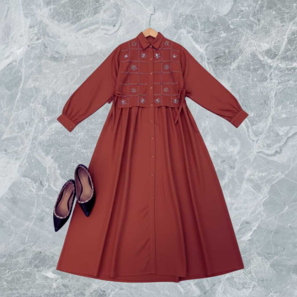 Tamara Gamis Remaja Ootd Korean Style Polo Linen Premium Mix Bordir Timbul Viral Kekinian DressPesta