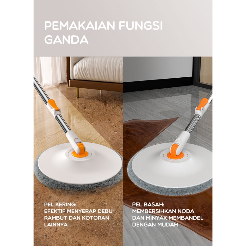 BONBOX Mop 2-in-1 Pel Lantai Bersih 360 Derajat Efisien Serat Pel Tebal Pemakaian Fungsi Ganda BM-001