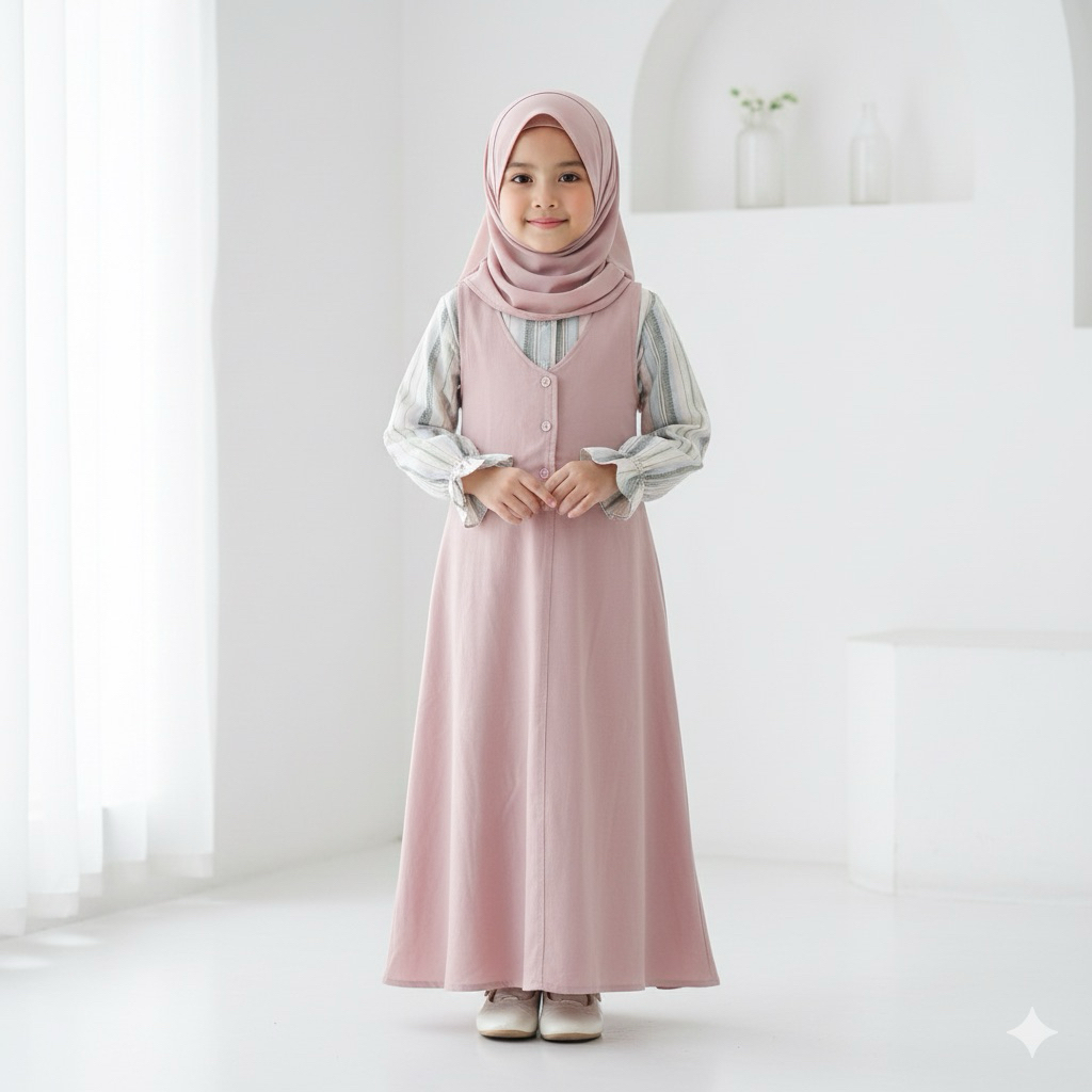 Setelan Overall Anak dan Ibu Baju Gamis Anak wanita Fashion Muslim Lengan Panjang Syar'i Katun