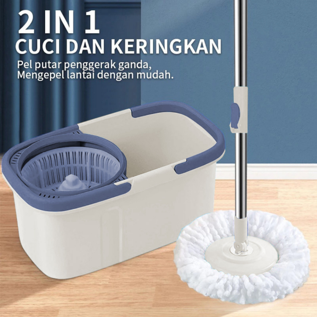DOTA Living Set Alat Pel Lantai Stainless Mop Dengan Ember Pencuci Putar Hand Pressure Rotary 360° FREE KAIN PEL CA