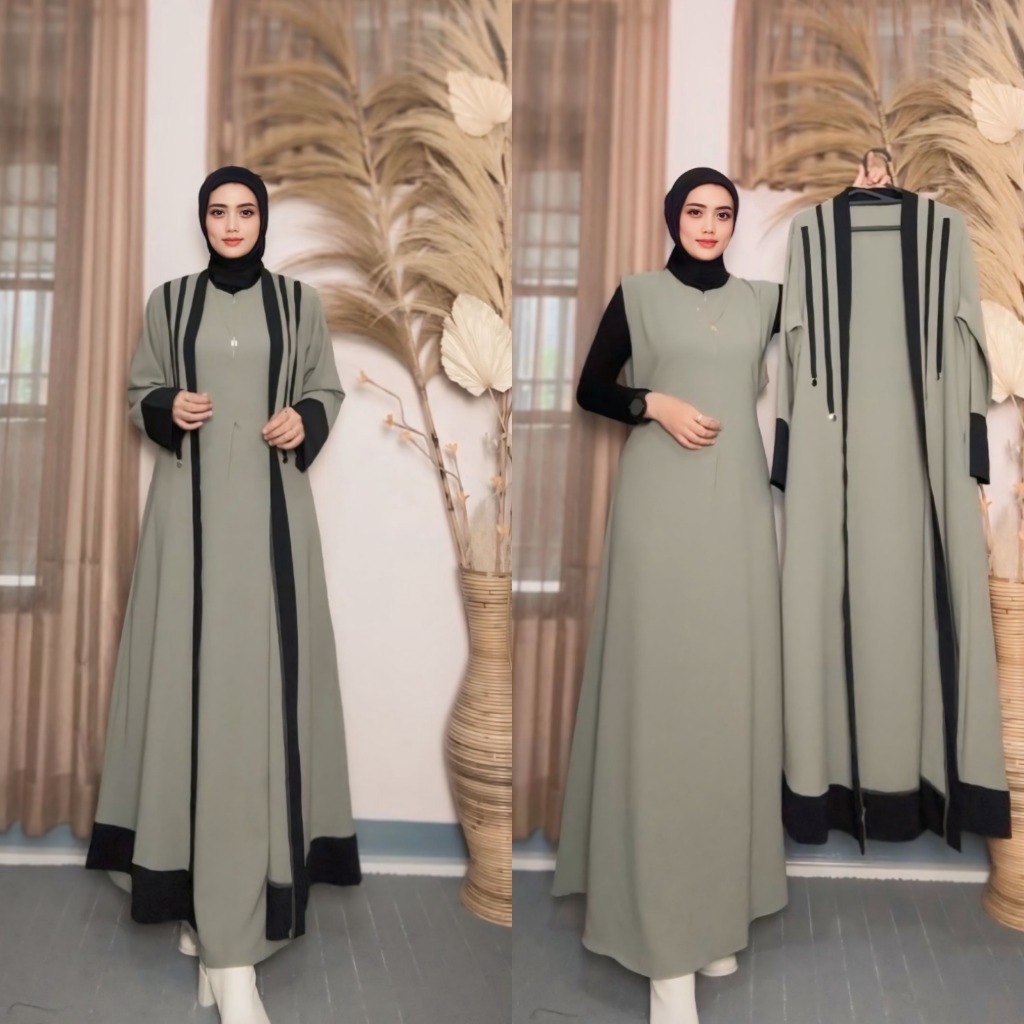Arumi Set Abaya Outer Dan Inner Premium Muslim Gamis Wanita Lebaran Dewasa Remaja Lembut Basic Turki