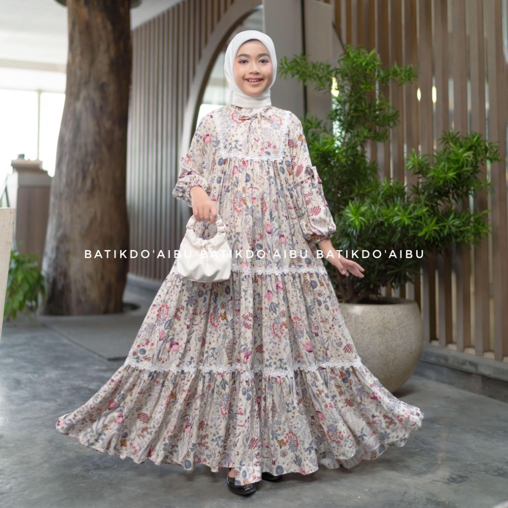 Hayvana Gamis anak Renda Dress - Gamis Rempel Renda Gamis Susun Lengan Balon Pita Gamis rayon premium