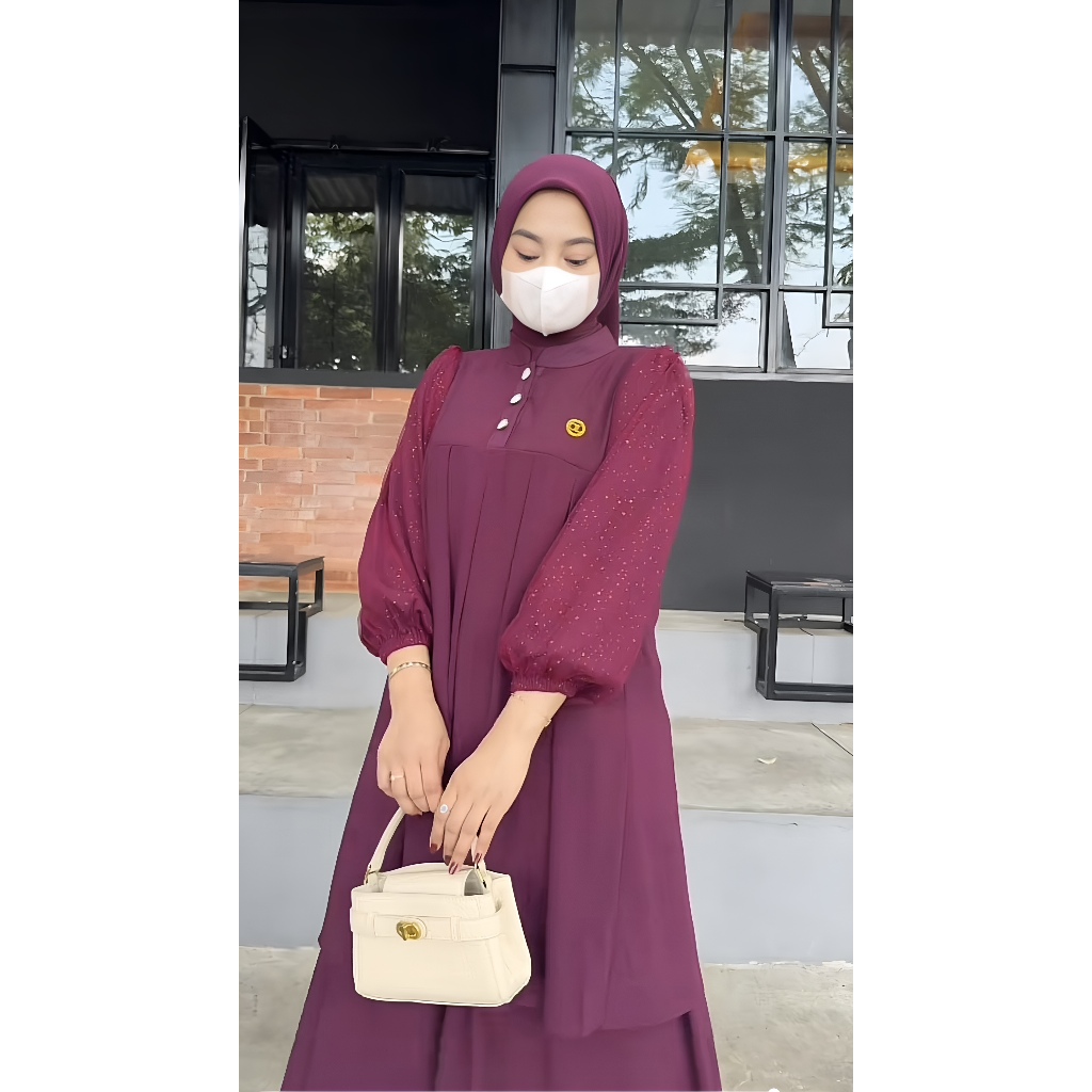 One Set Muslimah Stylish Setelan Tunik & Rok Ceruti Premium Full Furing Free Pashmina Ukuran M–Jumbo