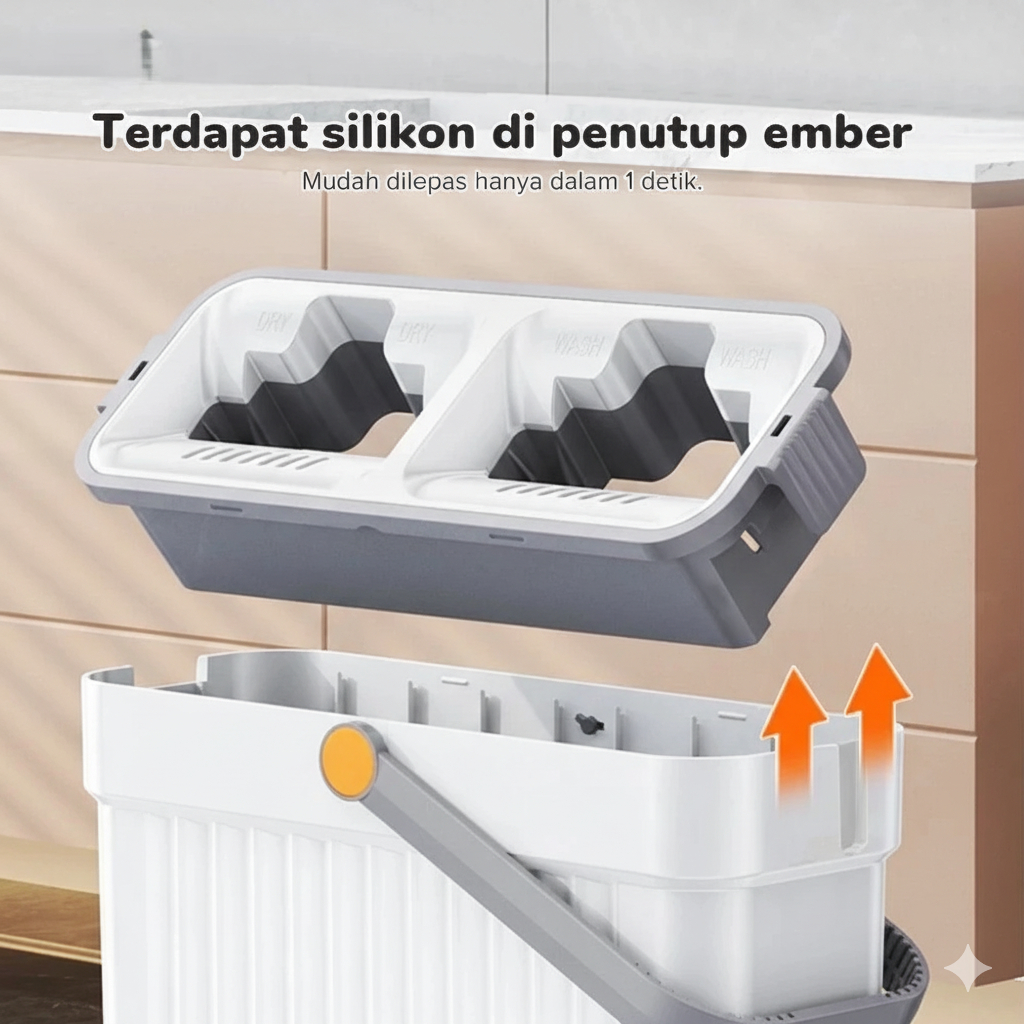 Pel Lantai Otomatis 2-in-1 Ember Sekat 360° Dual Bucket Mop Microfiber Anti Tumpah – Alat Pel Lantai Dengan Ember P