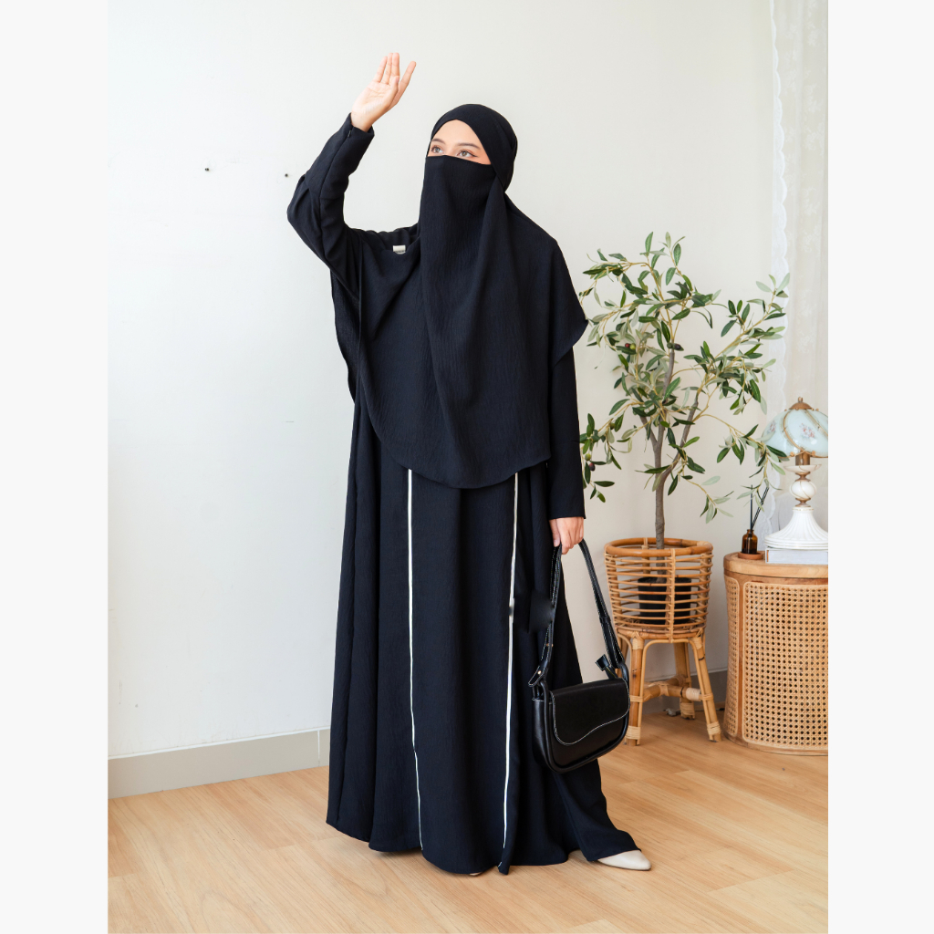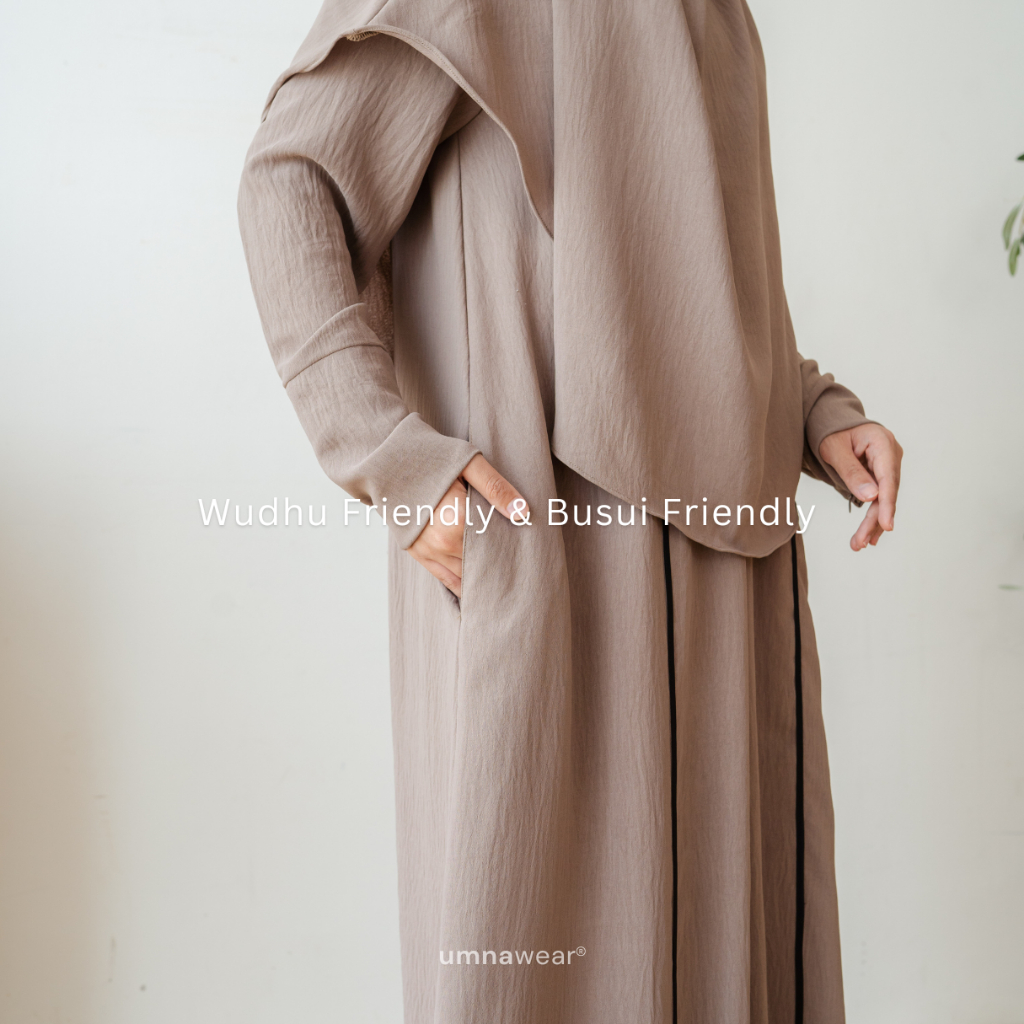 Faheera Abaya Set French Khimar Wanita Gamis Syari Umroh (Abaya List set Hijab) By Umnawear